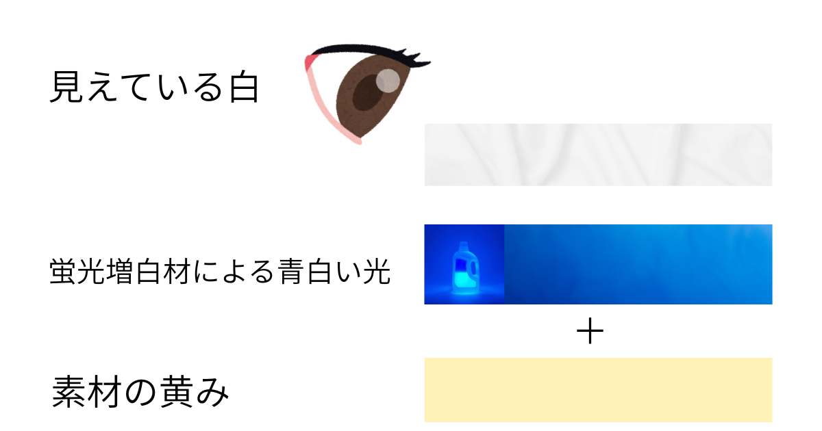 • 蛍光増白剤は“白い光の上塗り”による錯覚