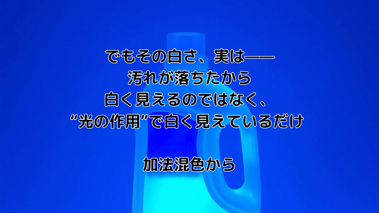 ここからは、色彩学で白く見えるのではなく、汚れが落ちるという、